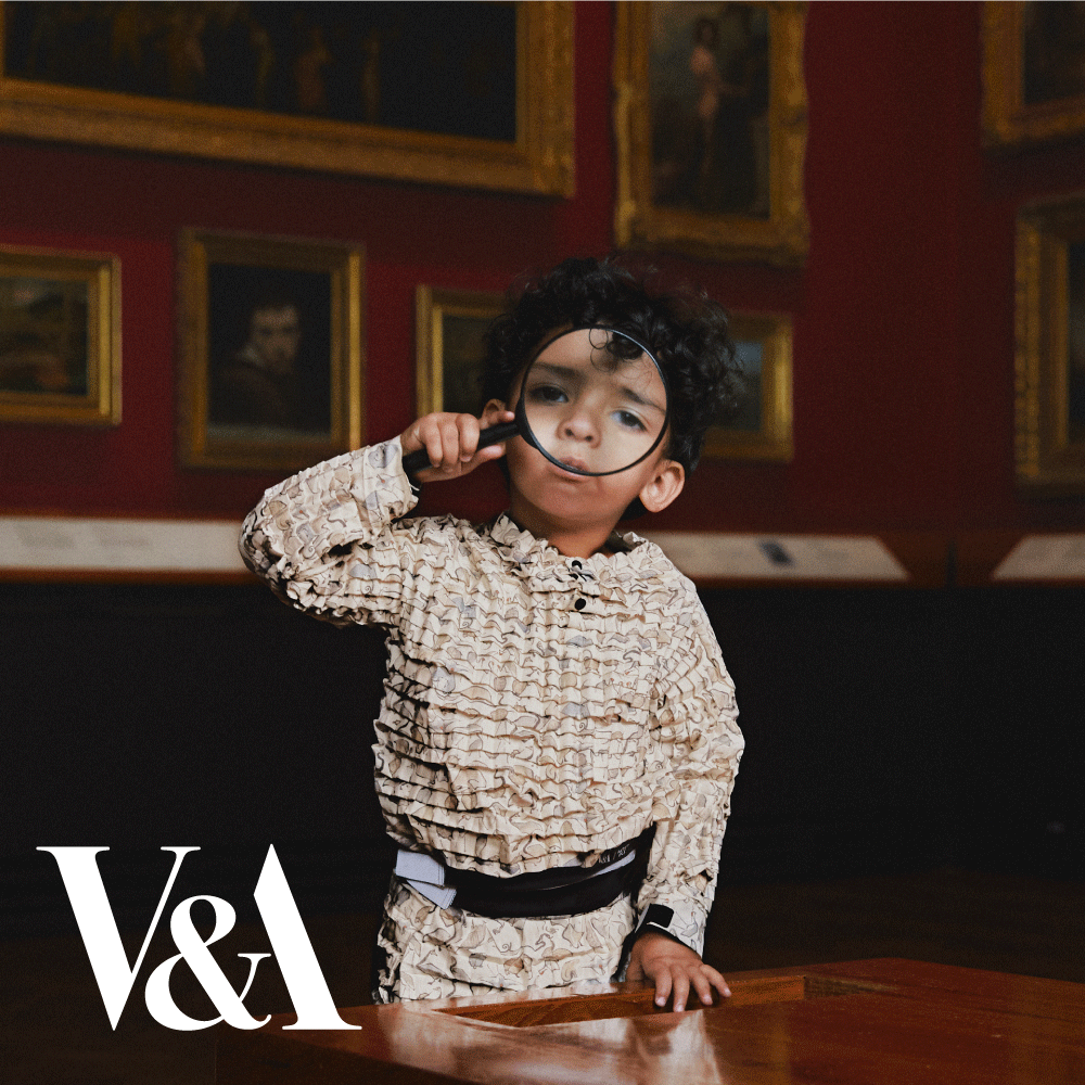 This series invites LittleHumans to explore familiar shapes and stories linking their clothes to the world around them. Each artwork reflects the evolving spirit of the V&A’s collection, speaking in a visual language little eyes understand.