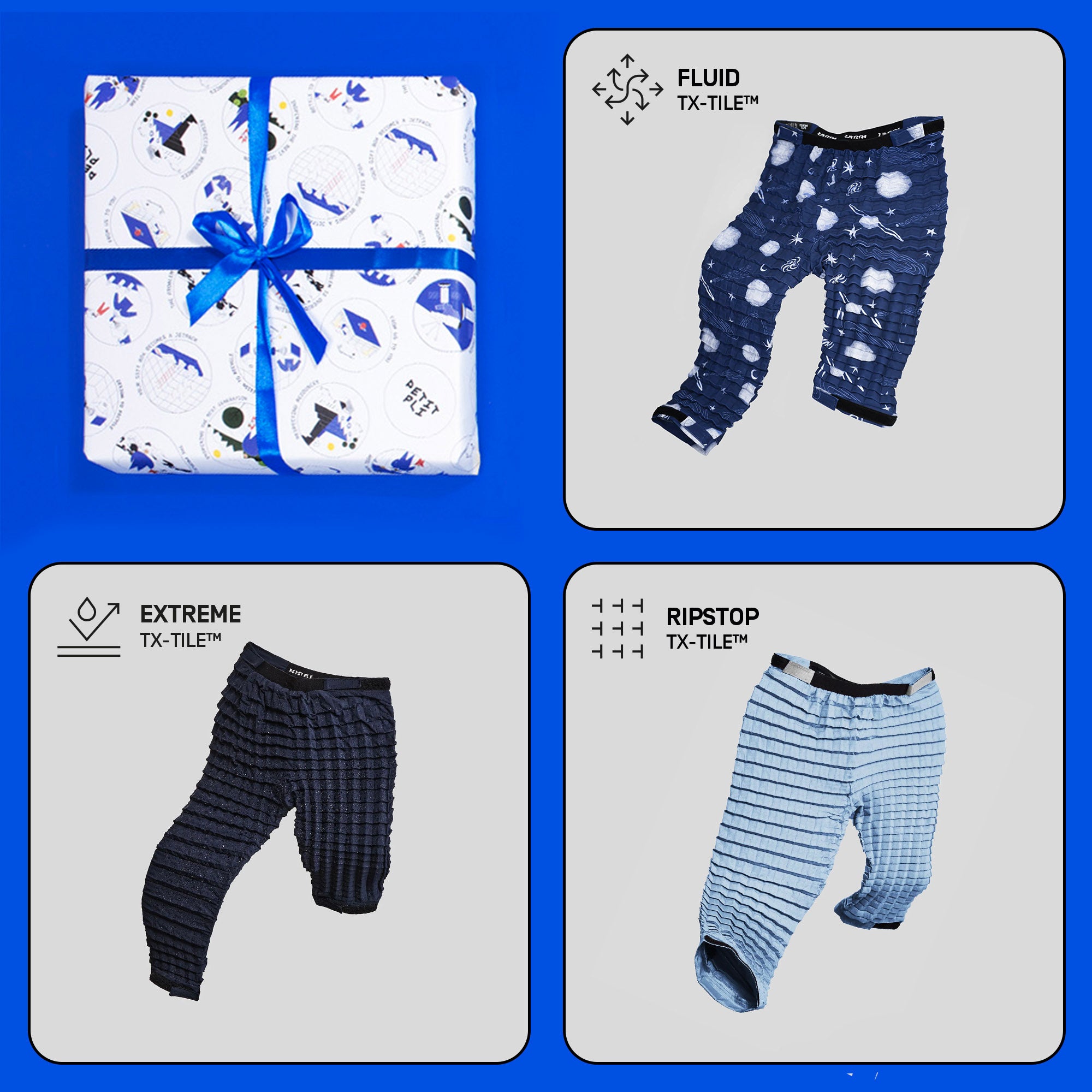 This all-condition ready bundle features our waterproof bottoms to keep them dry during rainy escapades, soft fluid textile bottoms for maximum comfort, and versatile mid-layer bottoms perfect for layering in any weather. Whether they’re exploring new worlds or just the garden, this bundle ensures they’re prepared for whatever comes their way.